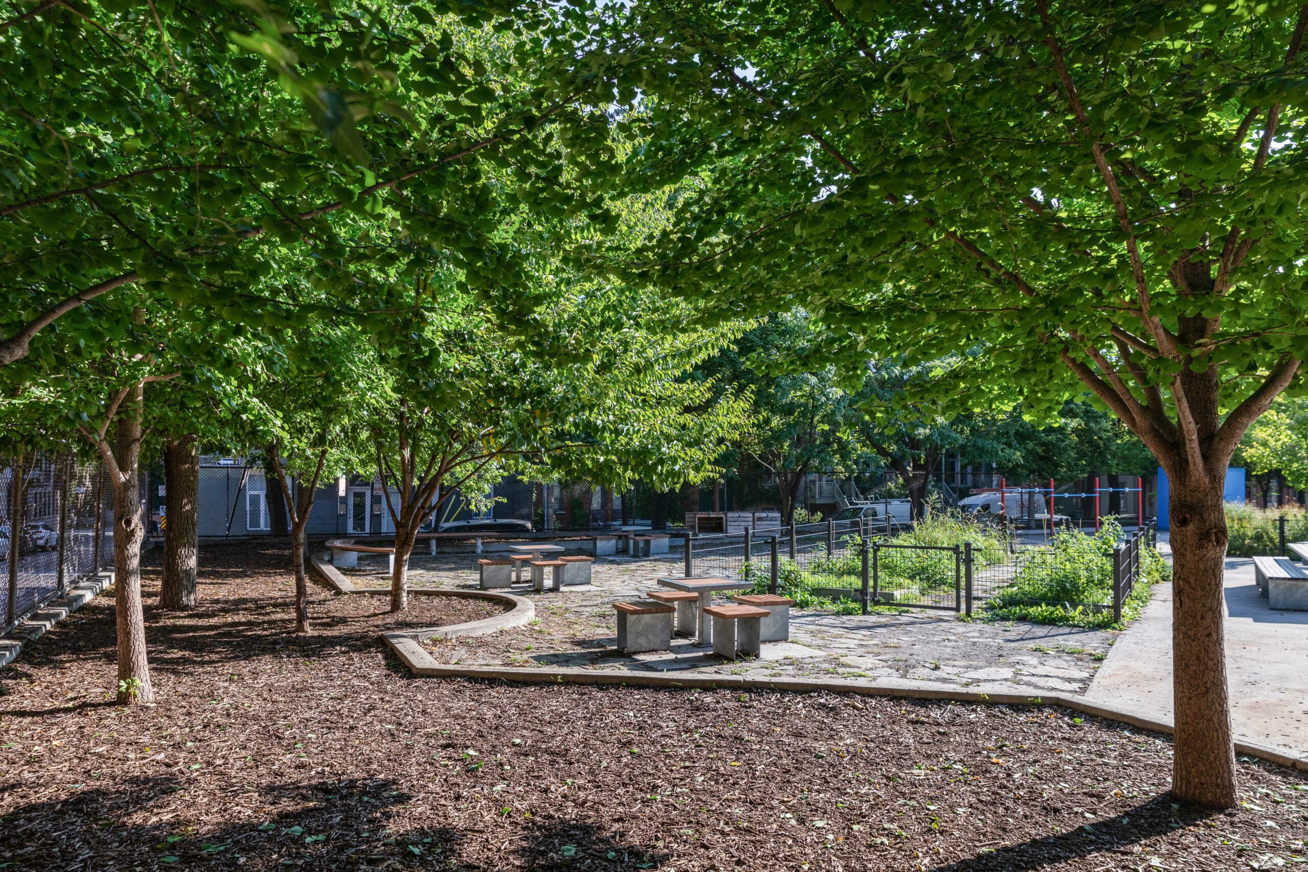 Le wow de cette cour d’école? Sa verdure! 15 arbres, 137 arbustes et 182 vivaces et graminées ont été plantés. Les élèves ont également accès à des bacs de plantation où ils entretiennent un jardin. Ils y cultivent, entre autres, des tomates et des poivrons.